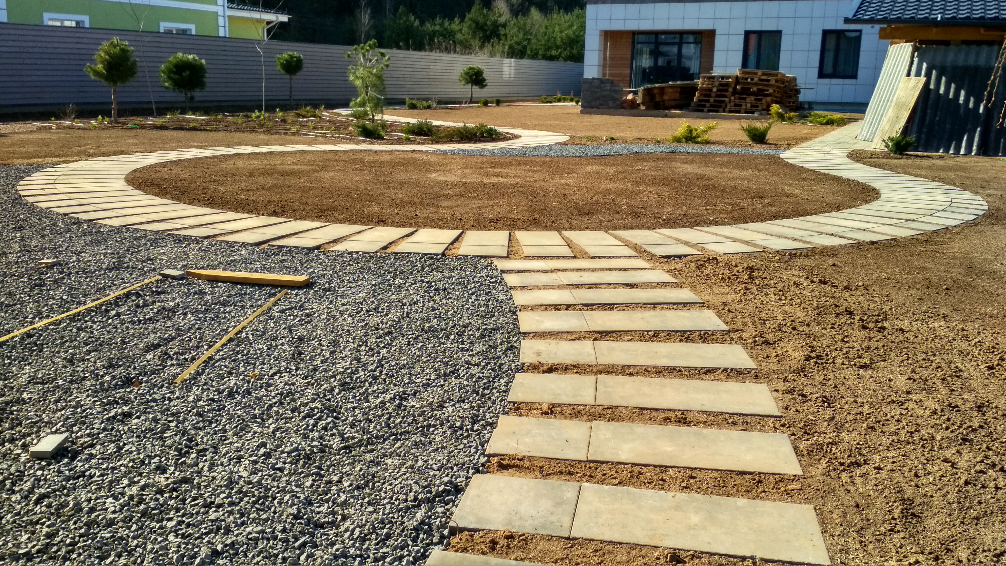 До начала мощения необходимо подготовить основание, которое послужит опорой для будущего покрытия. Основными материалами являются песок, песчано-гравийная смесь и гранитный щебень. Толщина слоя такой подготовки зависит от типа грунта, также при большом количестве глины рекомендуется использовать геотекстиль, чтобы ограничить просадку несущего основания.